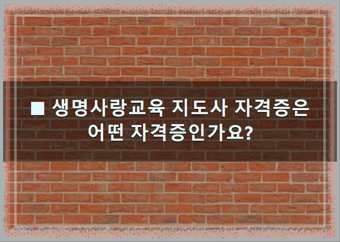 ■ 생명사랑교육 지도사 자격증은 어떤 자격증인가요?