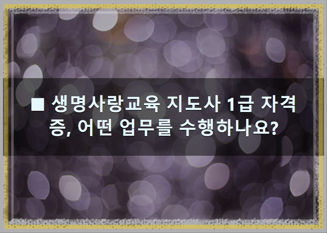 ■ 생명사랑교육 지도사 1급 자격증, 어떤 업무를 수행하나요?