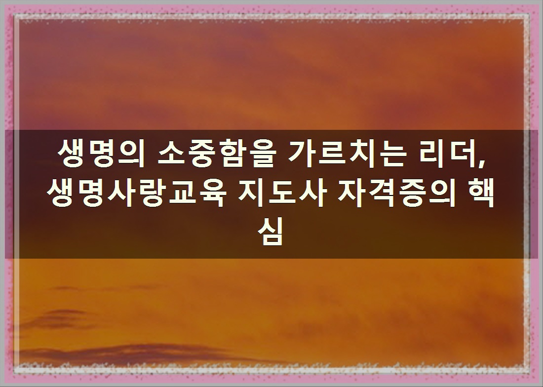 생명의 가치는 무엇으로도 환산할 수 없습니다. 하지만 현대 사회에서는 급변하는 환경 속에서 생명의 소중함을 잊고 살아가는 이들이 늘어나고 있습니다. 이러한 시대적 흐름 속에서, 생명의 존엄성을 일깨우고 사랑을 가르치는 중요한 역할을 수행하는 이들이 있습니다. 바로 생명사랑교육 지도사입니다. 과연 이 유망한 민간 자격증은 어떤 내용을 담고 있으며, 어떻게 취득할 수 있을까요? 지금부터 생명사랑교육 지도사 자격증에 대한 모든 궁금증을 해결해 드리겠습니다. 그럼 아래 바로 확인해 보실까여?